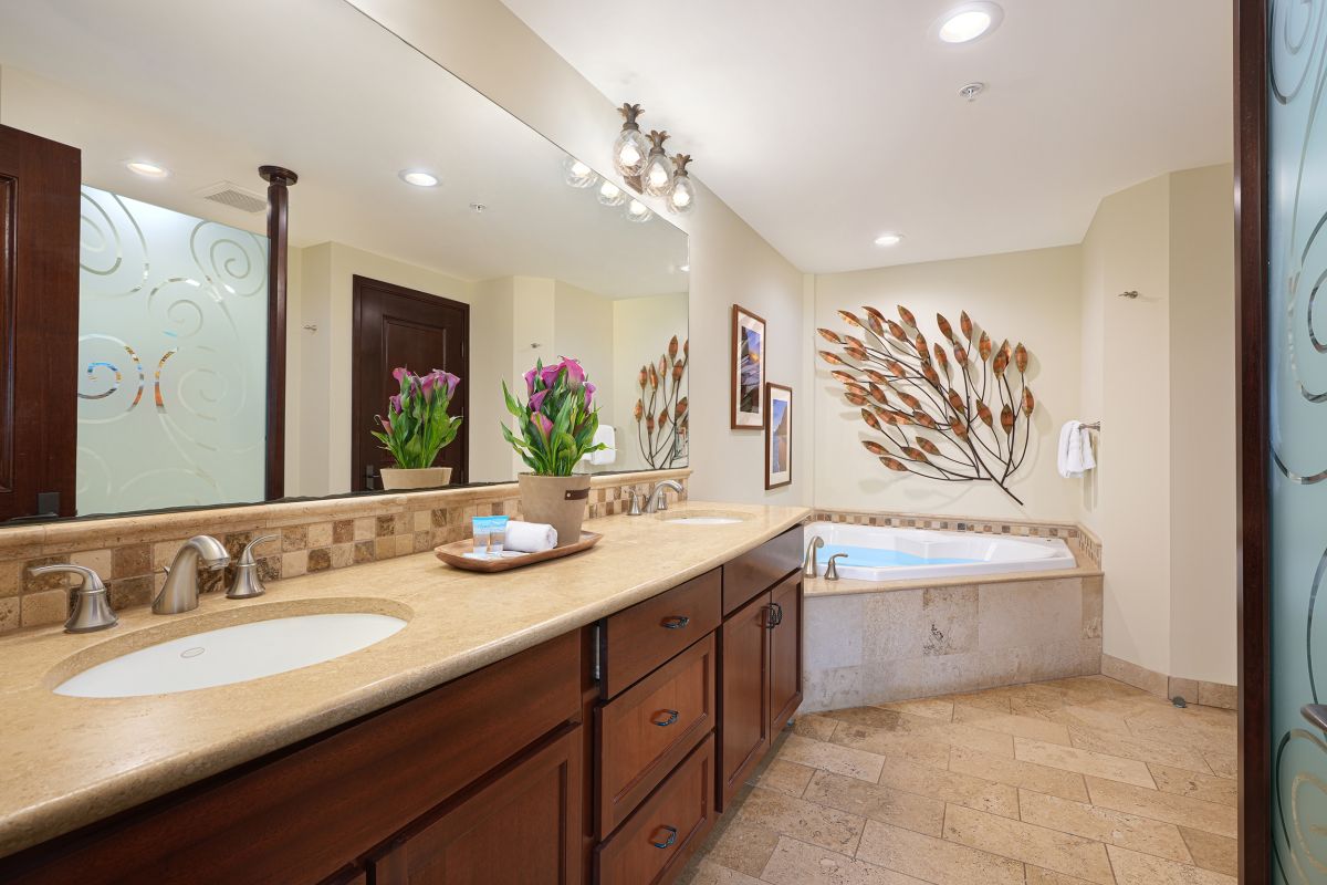 The Master Bedroom Suite has a king bed, a dresser and a Master Bath with a soaking tub for luxurious baths and a separate shower in the 2nd bathroom. With the queen sleeper sofa this condo comfortably accommodates 2 to 4 people.